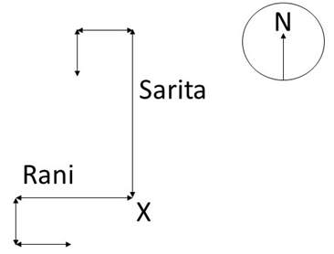 1) Rani and Sarita started from a place X. Rani went west and Sarita went North both traveling at the same speed. After some time both turned their left and walked a few steps if they again turned to their left in which directions the faces of Rani and Sarita will be with respect to X?