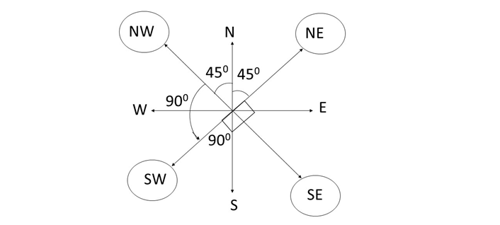 4) Seema walks 30m North. Then she turns right and walks 55m. Then she turns left and walks 20m. Then she again turns left and walks 25m. How many meters away is she from her original position?